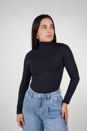 A fitted long-sleeve turtleneck bodysuit crafted in ultra-smooth stretch fabric—your go-to layering essential for fall and winter.