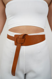 Rivana Knot Belt | Caramel Faux Leather Wide Wrap Belt
