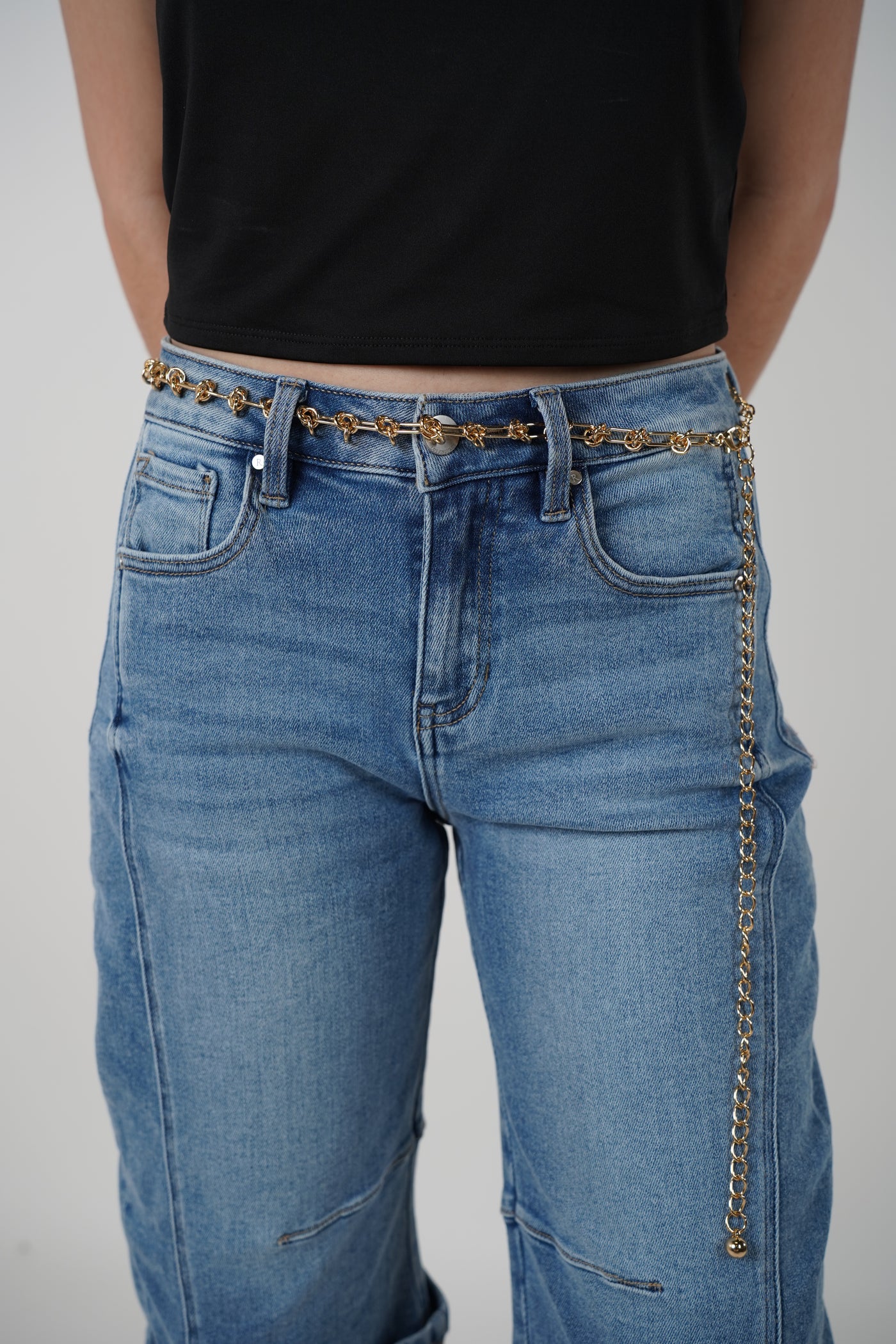 Elevate your waist game with the Visa Knot Chain Belt, a golden masterpiece made to turn heads. Featuring a series of intricate knotted chain links and a delicate dangling charm, this belt adds instant flair to any outfit. Whether styled over denim, dresses, or layered with skirts, it’s a versatile statement accessory that brings sophistication and edge in one. The adjustable fit allows for endless styling options—from high waist to low slung.