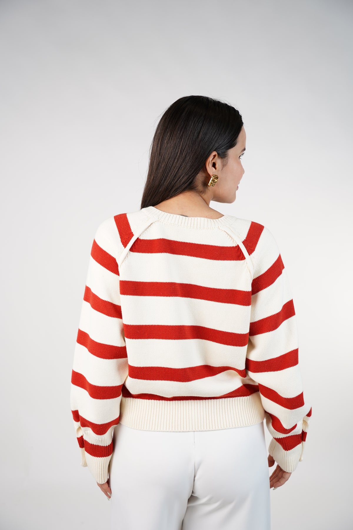 Lucerra Striped Sweater Cardigan | Button-Front Knit Top