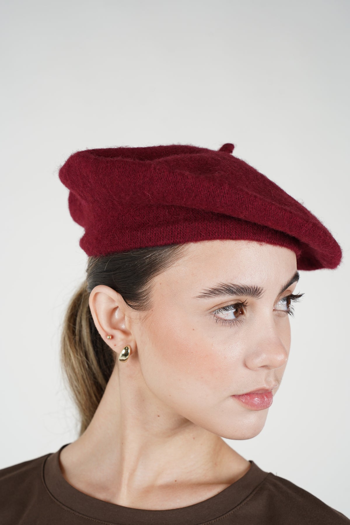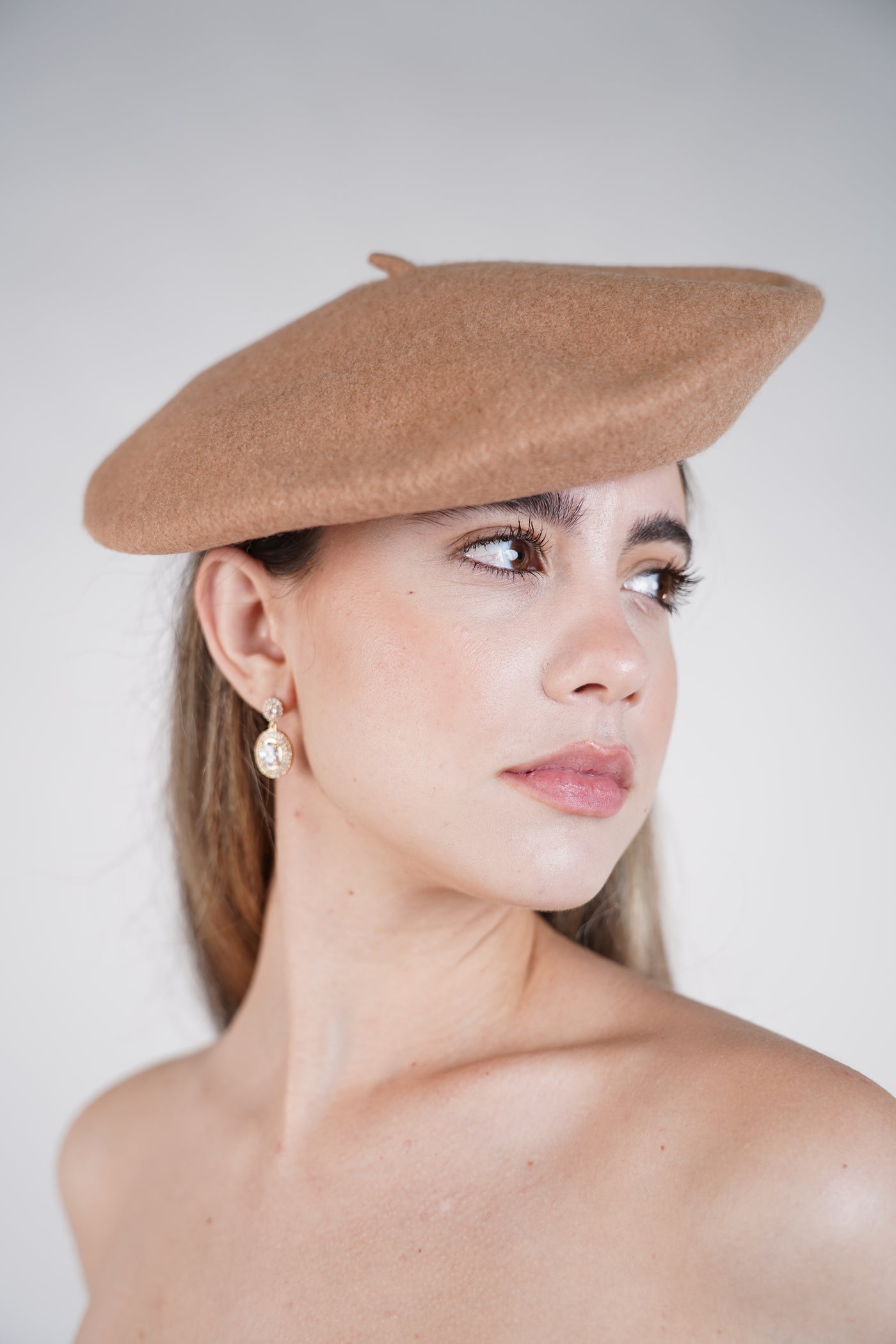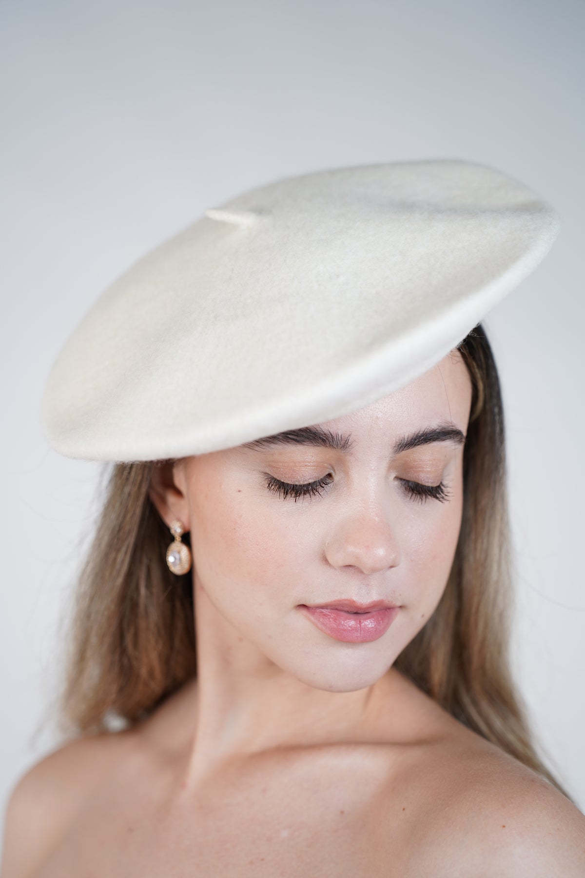 Paris Beret Hat – elegant ivory wool beret styled with pearl earrings