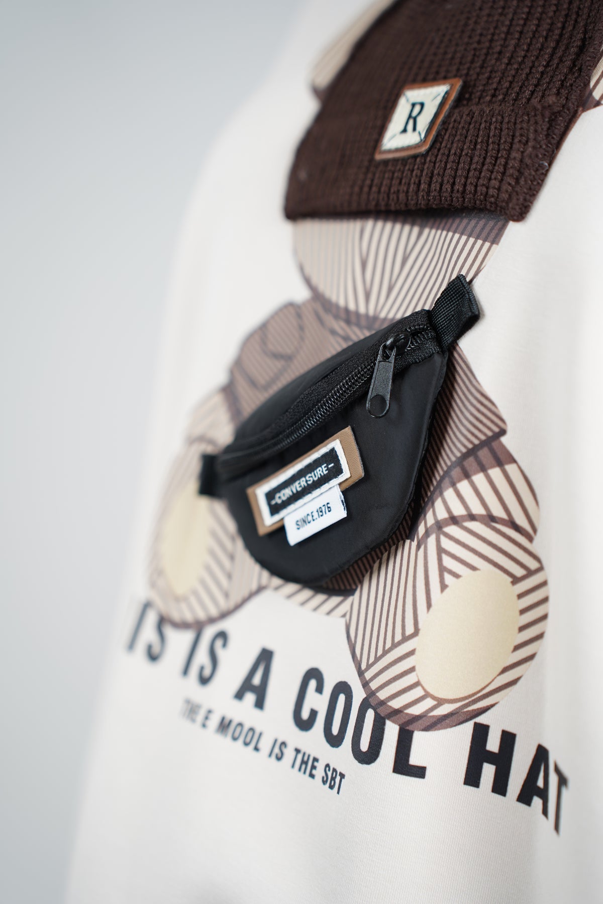 Cute meets cozy in the Jolie Bear Sweater, a playful pullover that brings comfort and charm to your everyday looks. Designed in a soft beige tone, it features a 3D teddy bear patch with an adorable beanie and mini pouch accent that adds a fun, textured touch.