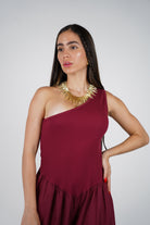 The Koriya Jumpsuit is a stunning one-piece that merges simplicity with flair. Featuring a ribbed one-shoulder top and soft, gathered wide-leg bottoms, this design flatters while offering ease of movement. The seamless waist transition adds elegance to its relaxed fit, while the rich burgundy hue makes it a versatile piece for both day and night. Perfect for events, date nights, or vacations, this jumpsuit brings effortless sophistication with every wear.
