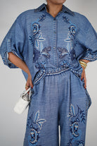 Melin Denim Style Set – Embroidered Oversized Shirt & Wide Pants