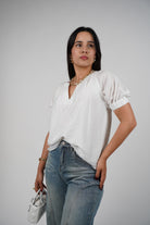 Meta Description: The Syale Top is your go-to white blouse with puff sleeves and a clean V-neckline. Lightweight and stylish for everyday looks.
