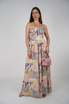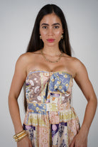 Meta Title: Teyla Strapless Patch Print Jumpsuit with Bow | Carema Boutique