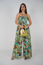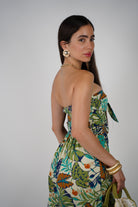 Teyla Jumpsuit – Strapless Patch Print with Bow Detail