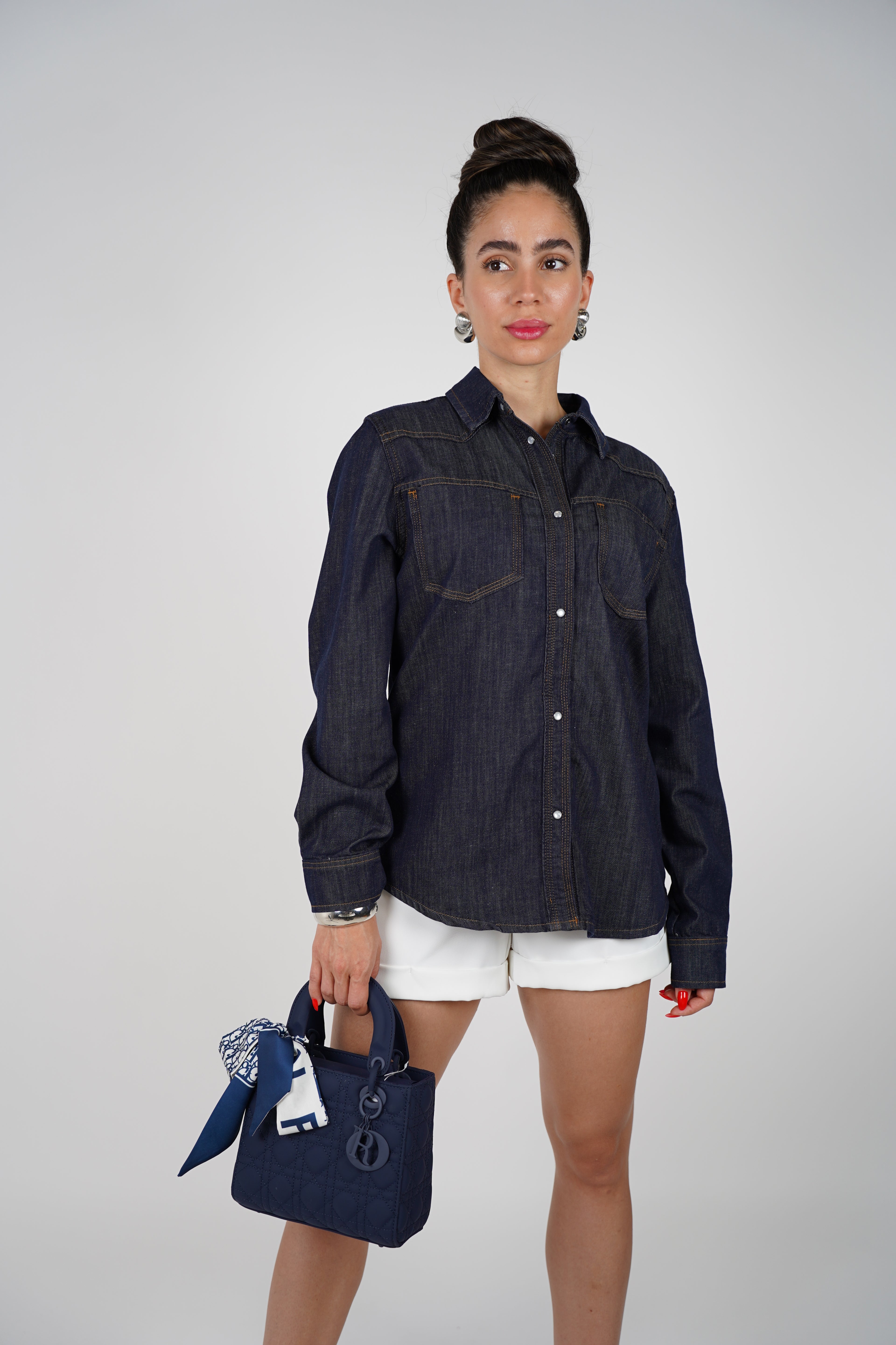 Meta Description: Meet the Zirel Button Down – a dark-wash denim shirt with tailored details and versatile style. Shop this wardrobe essential now at Carema Boutique.
