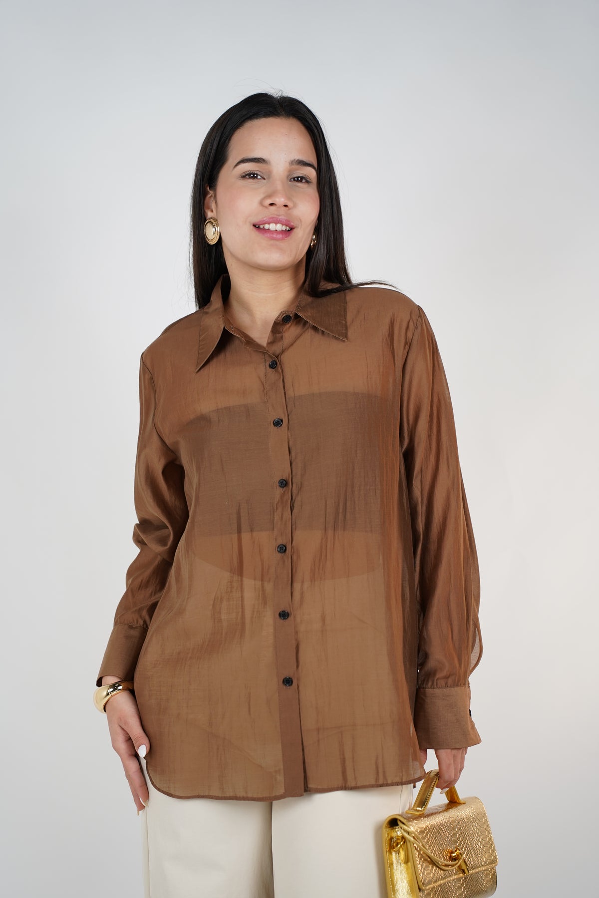 A lightweight button-down top designed with a relaxed fit and a soft, fluid drape.