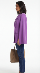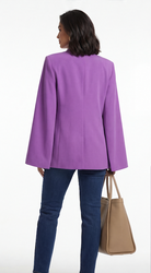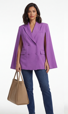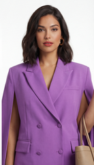 Tailored cape blazer with a double-breasted front and fluid silhouette. A timeless investment piece for modern, elevated styling.