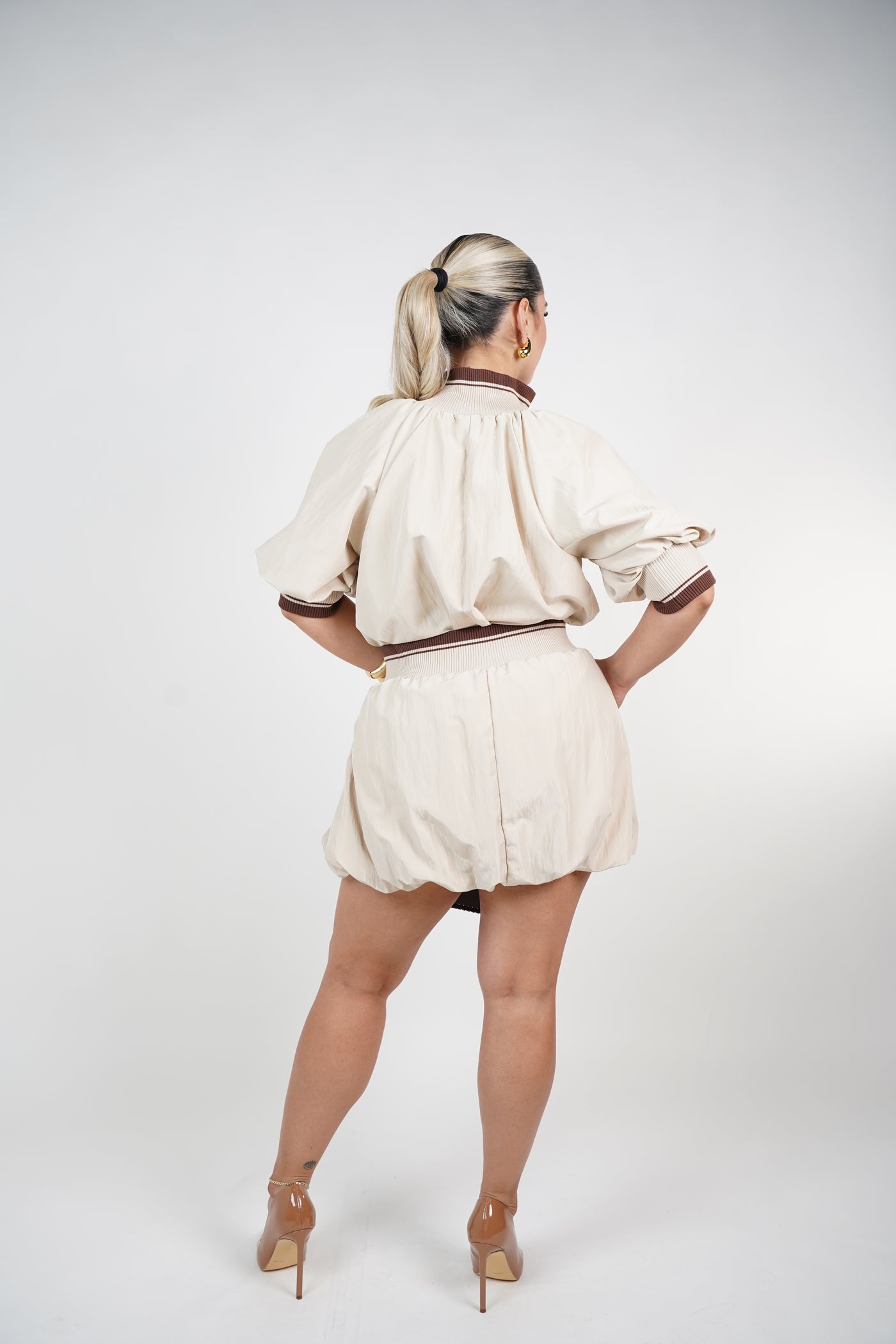 A bold and playful two-piece mini skirt set designed with volume, movement, and a sporty-chic edge that instantly stands out.