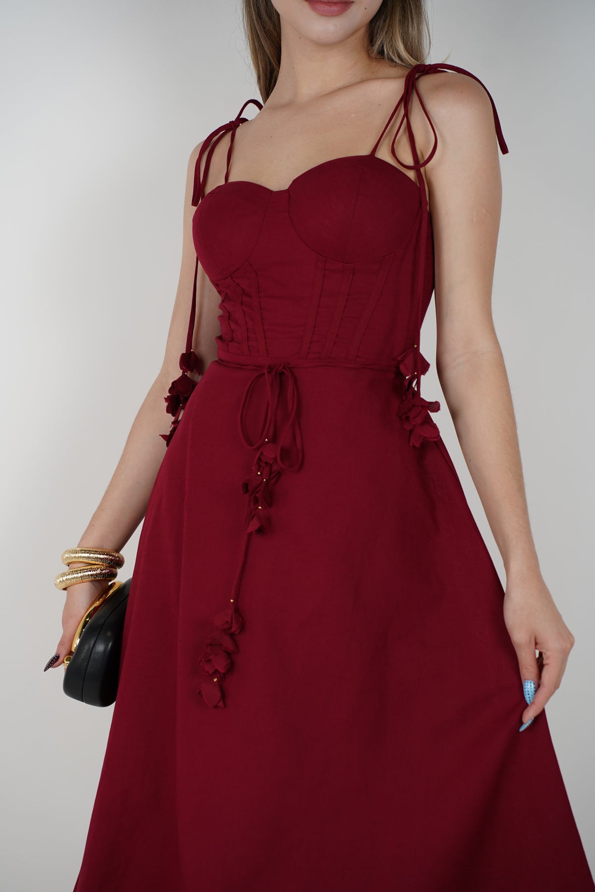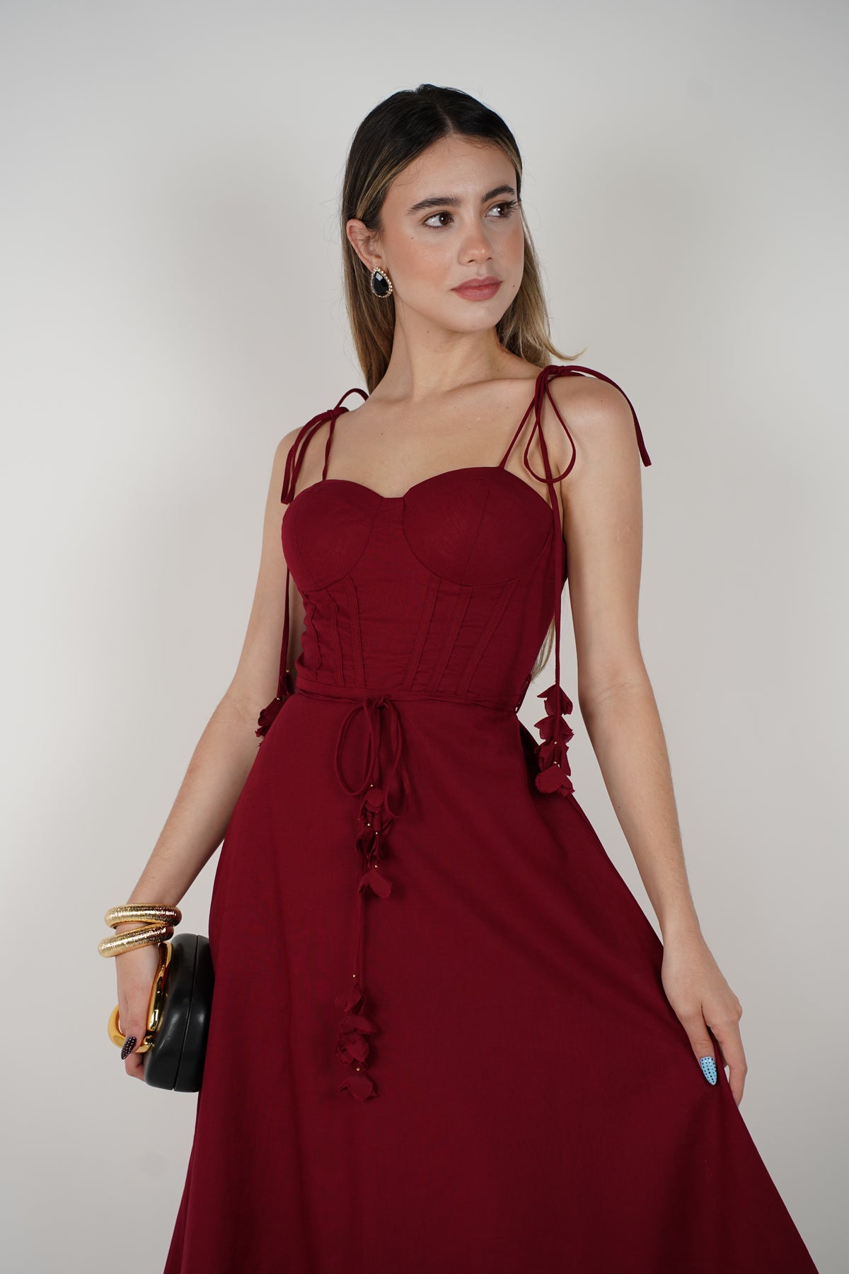 Meta Title: Valencia Maxi Elegant Dress – Carema Boutique Meta Description: The Valencia Maxi Dress features a corset bodice, tie straps, and flared skirt—perfect for formal events. Multiple colors available. Shop Carema Boutique.