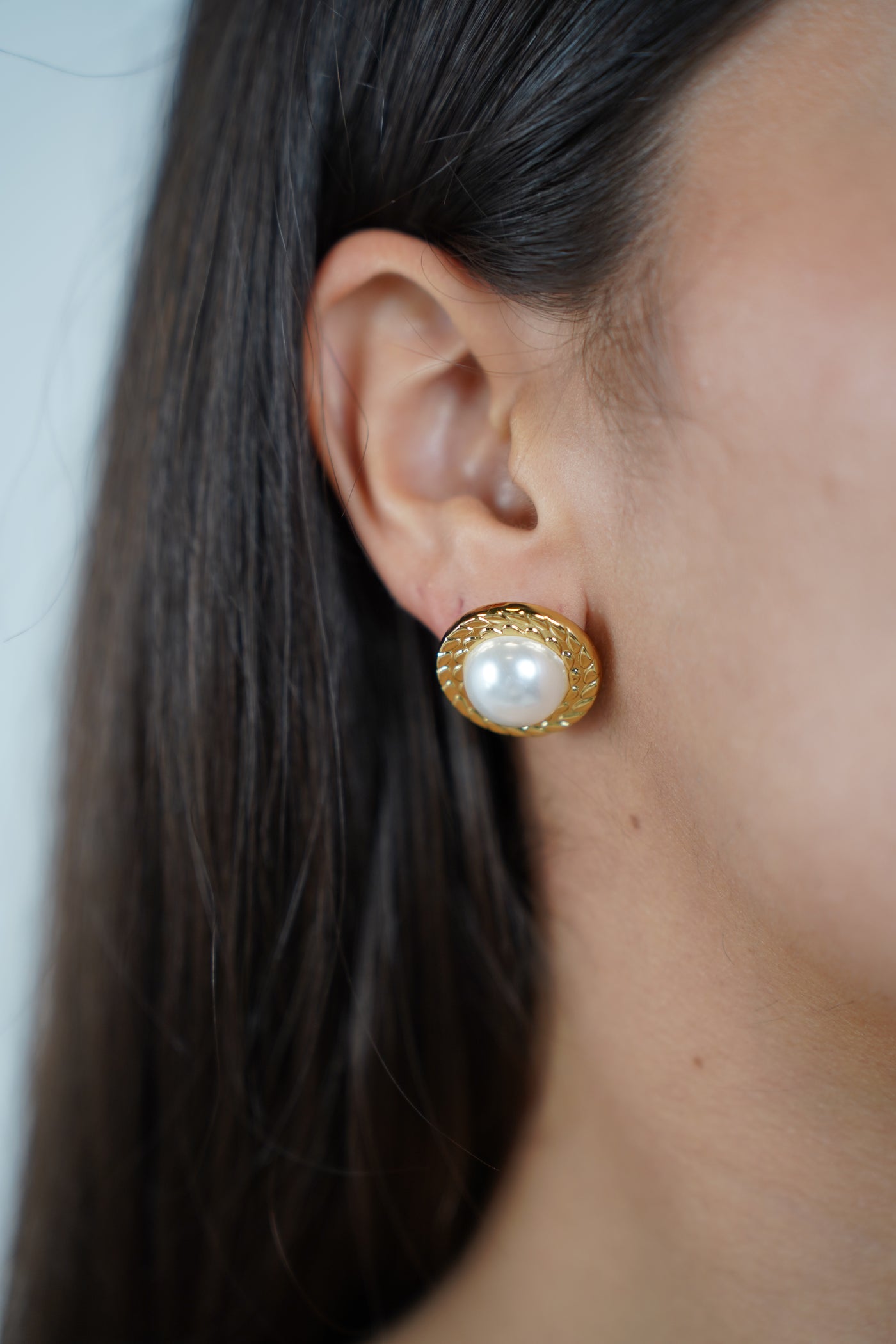 Floria Pearl Stud Earrings – Classic Gold Framed Statement Studs