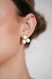 The Lirra Studs Earring brings timeless elegance in a modern cluster design. Each earring showcases three round, mother-of-pearl-inspired stones framed in a refined gold-tone setting. These studs offer a clean, luminous look that easily elevates both casual and formal outfits. Lightweight and secure, they’re perfect for everyday glam or an understated statement.