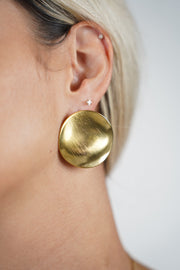 Elevate your look with the bold brilliance of this oversized brushed gold disc stud — minimalist yet striking.