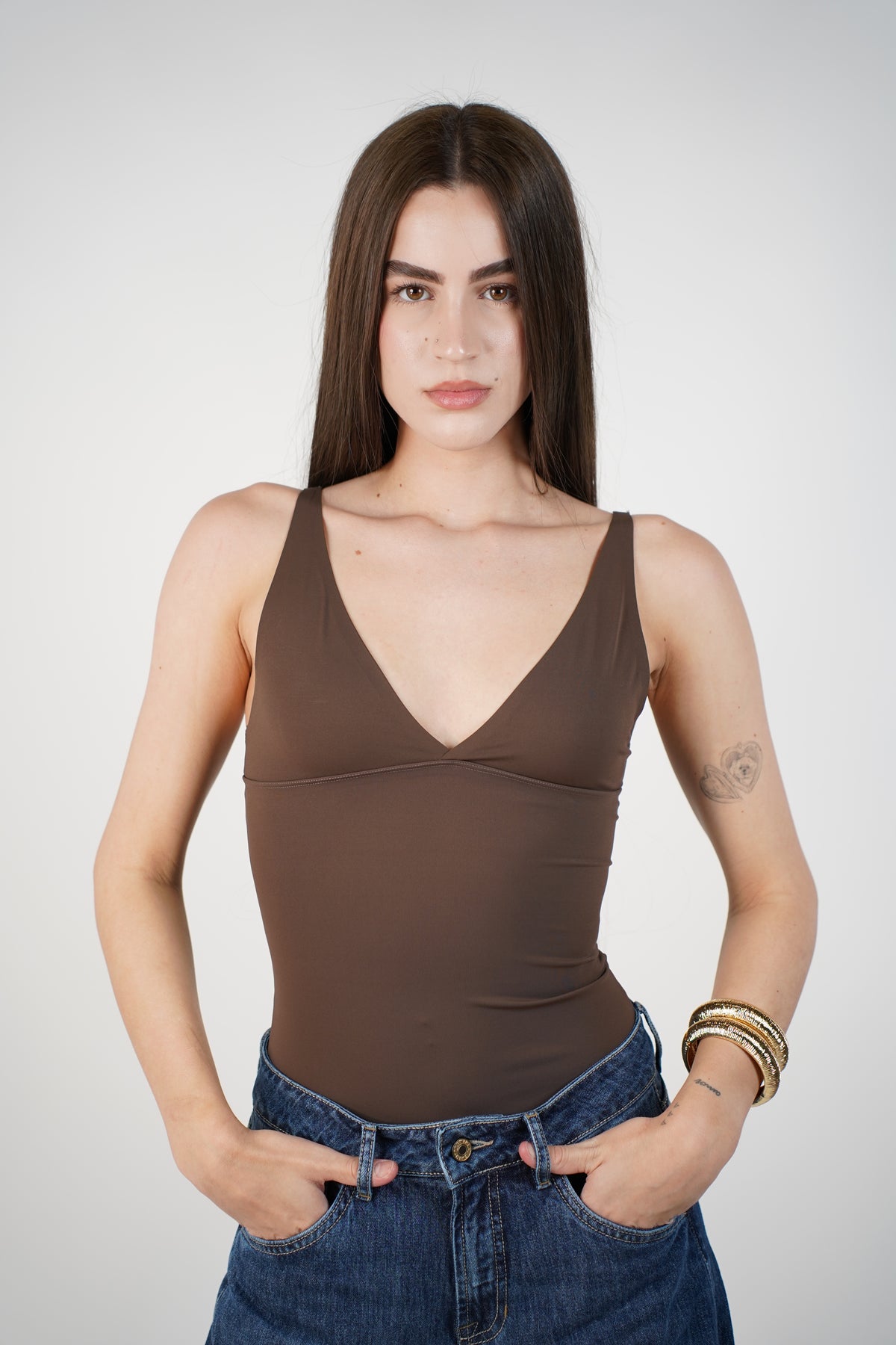 Taly Seamless Bodysuit – Deep V Brown Bodysuit