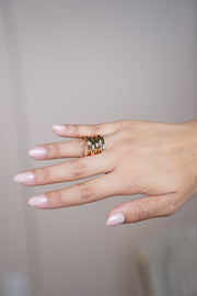 A stacked-style chunky ring with a high-shine gold finish that makes a bold yet elegant statement.