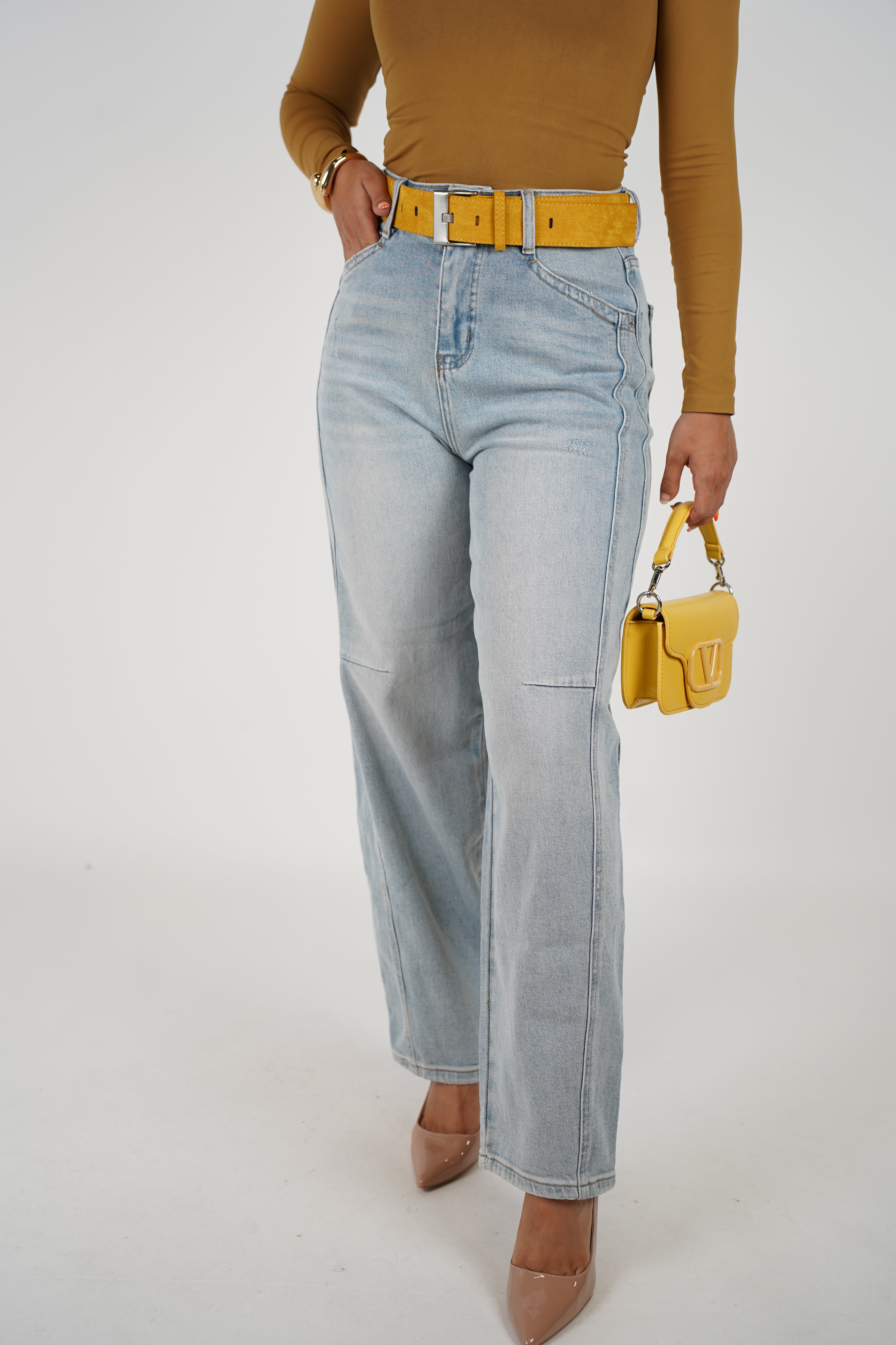 Daniela Jeans – Light Wash Wide-Leg Denim with Mustard Belt Included