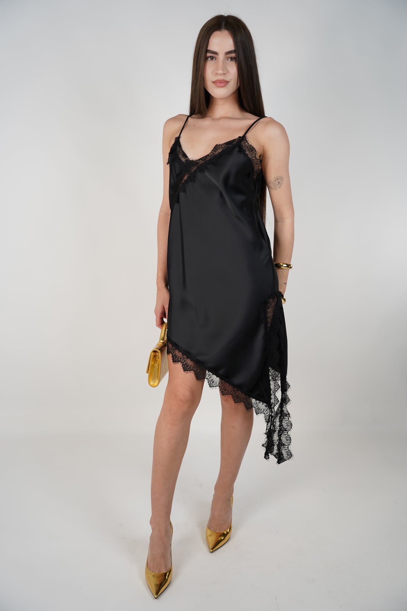 Janelle Satin Lace Mini Dress | Asymmetrical Slip Dress
