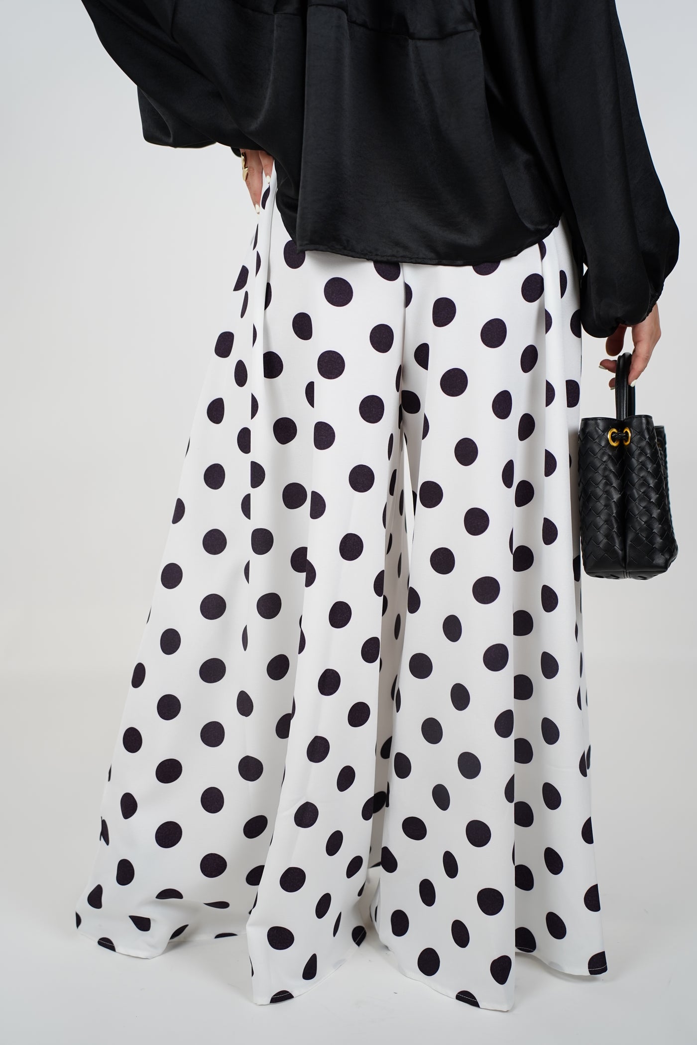 Ruby Polka Dot Palazzo Pants – Statement Volume with Retro Charm - White / Medium