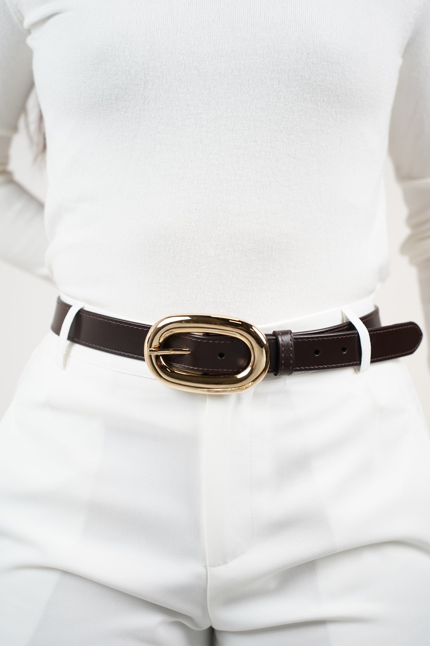 Polished oval gold buckle for a chic touch