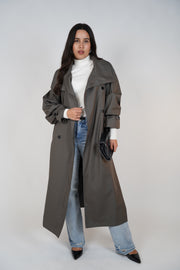 A timeless trench coat designed with a clean, structured silhouette and classic detailing.